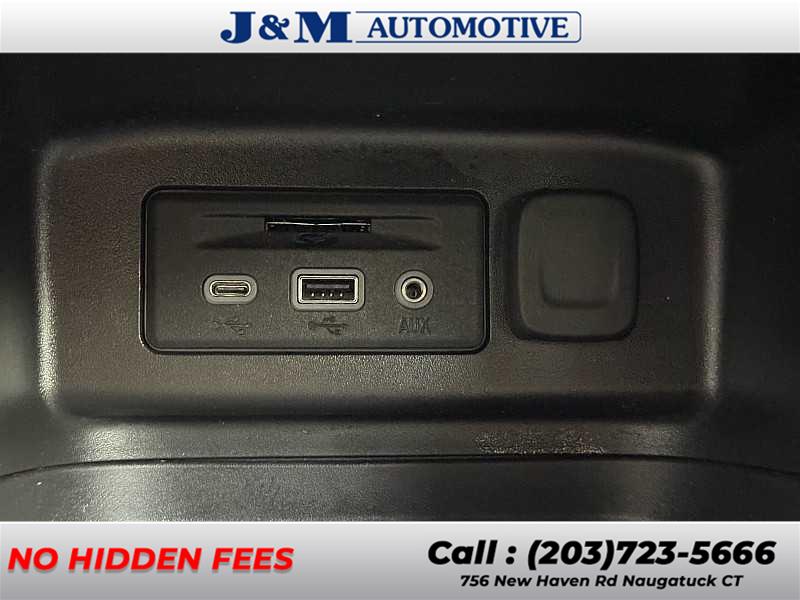 - USB ports, 2, with auxiliary input jack, located in front center stack storage area